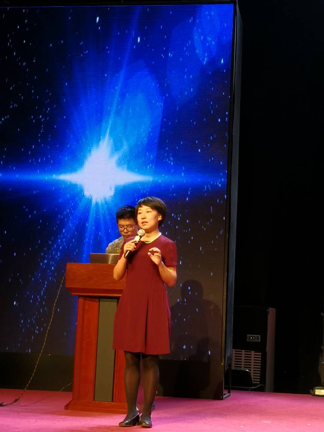 晚上19:00培训会正式开始。教务处双创办专职副主任吴迪首先介绍了2018年学校创新创业教育工作。她说,学校贯彻“创新创业教育贯穿人才培养全过程、全课程”的双创教育理念,以“万门课程计划”丰富教学资源,以智慧教学环境强力支撑课堂教学革命,以双创团队队伍建设引入国际国内优质资源的具体做法取得了显著成效。随后,现场播放了第四届取得国赛金奖项目的答辩视频。