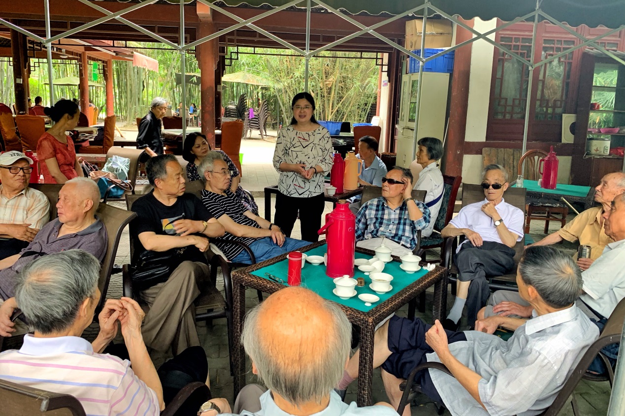 6月10日,由院工会举办的退休教师月聚会在望江公园举行,学院40余名退休教师相聚碧鸡坊茶厅。参加聚会的许多老师已步入耄耋之年,他们或品茗聊天,畅谈学校、学院发展,或相互问候,追忆青春执教岁月,现场气氛温馨祥和……