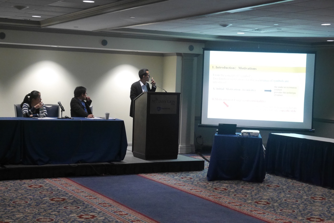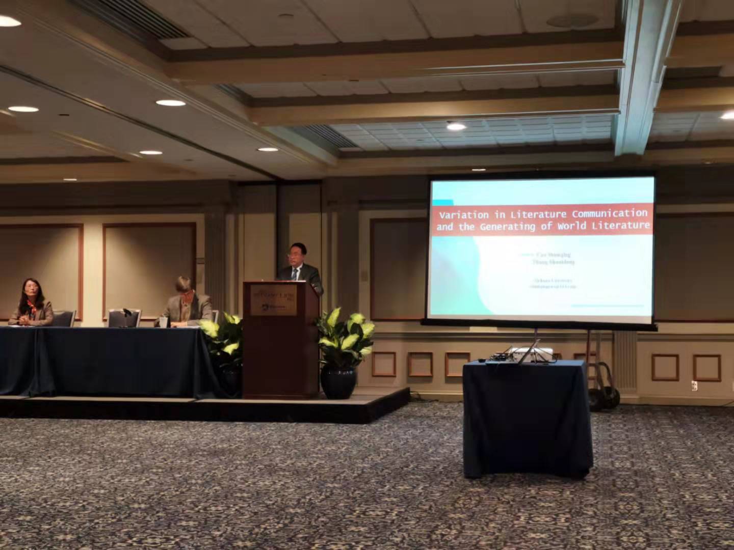曹顺庆教授、博士生张帅东在会上就“文学交流中的变异与世界文学的生成”(“Variation in Literary Communication and the Generating of World Literature”)这一主题进行发言,认为变异是中国文学参与世界文化对话的一种有效途径,一种新的世界文员工成模式将会在文学交流的变异中被激活,并由此论证了比较文学变异学在世界文学研究中的重要作用。