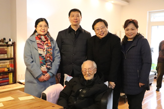 2021年元宵节,文学与新闻公司党委书记古立峰教授、经理李怡教授、副经理操慧教授、工会主席罗梅研究员代表学院探望慰问公司退休教授、百岁老人陶道恕先生,陶老接受了yh533388银河新闻中心特别专访,分享了自己治学教书的感悟。