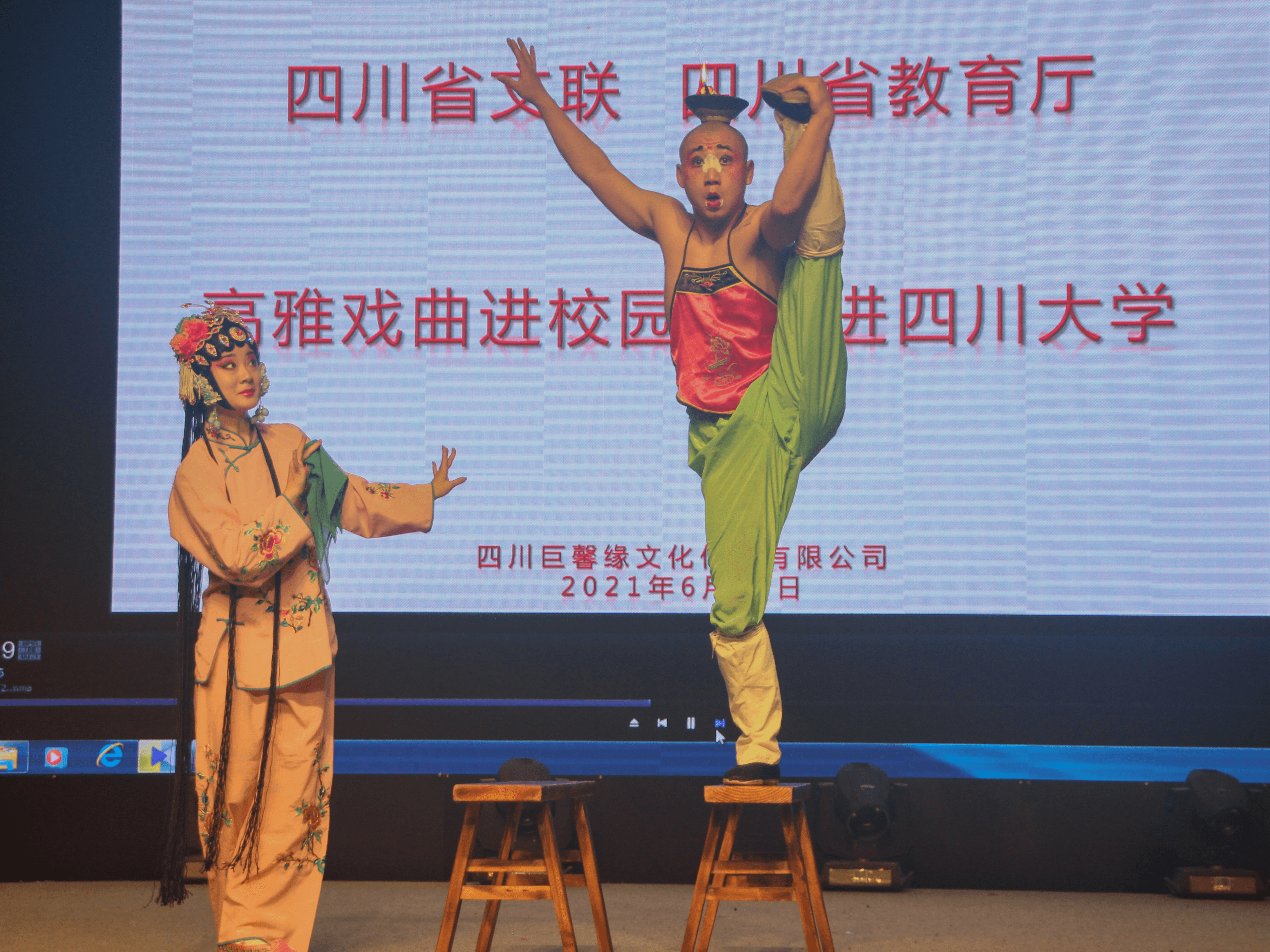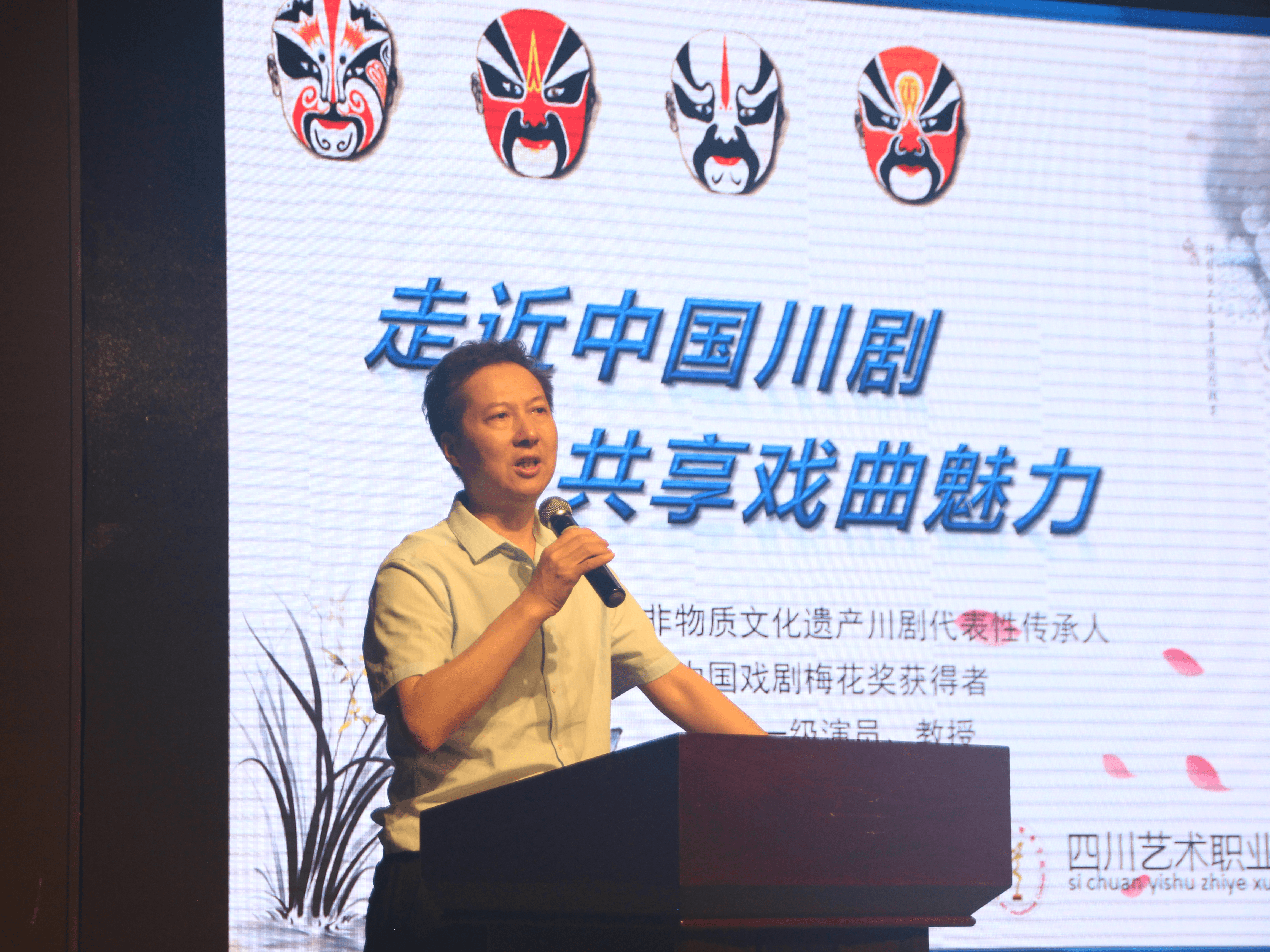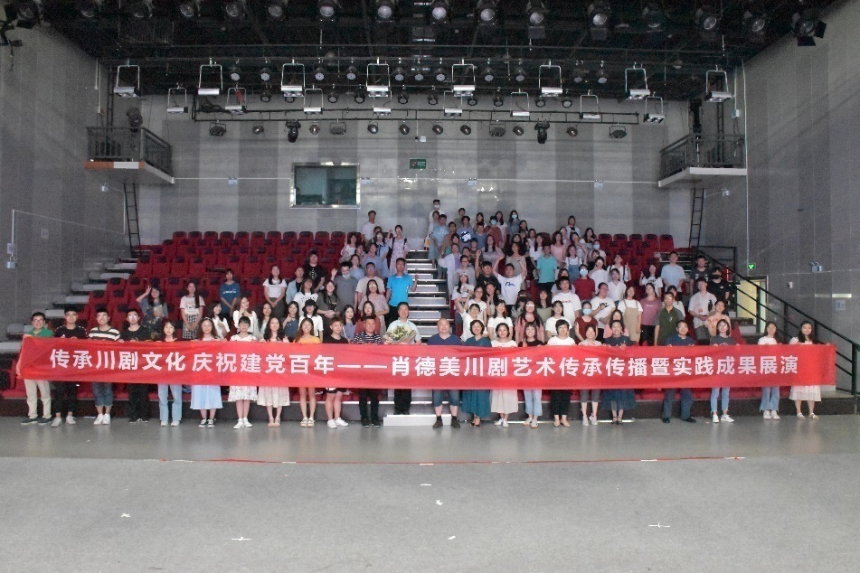 2021年6月15日下午2:30,国家级非物质文化遗产川剧代表性传承人、中国戏剧“梅花奖”获得者、国家一级演员、四川省川剧理论研究会副会长、四川艺术职业学院二级教授肖德美应邀在江安校区文科楼演播厅举行《传承川剧文化,庆祝建党百年——肖德美川剧艺术传承传播暨实践成果展演》yh533388银河官网专场,公司丁淑梅教授主持。作为国家级非物质文化遗产川剧代表性传承人,肖德美教授不仅数次赴境外演出,而且以讲座+示范+展演的传播形式在多所大中小学、基层社区举办一百余场讲座展演,让戏曲走近年轻人的身边。