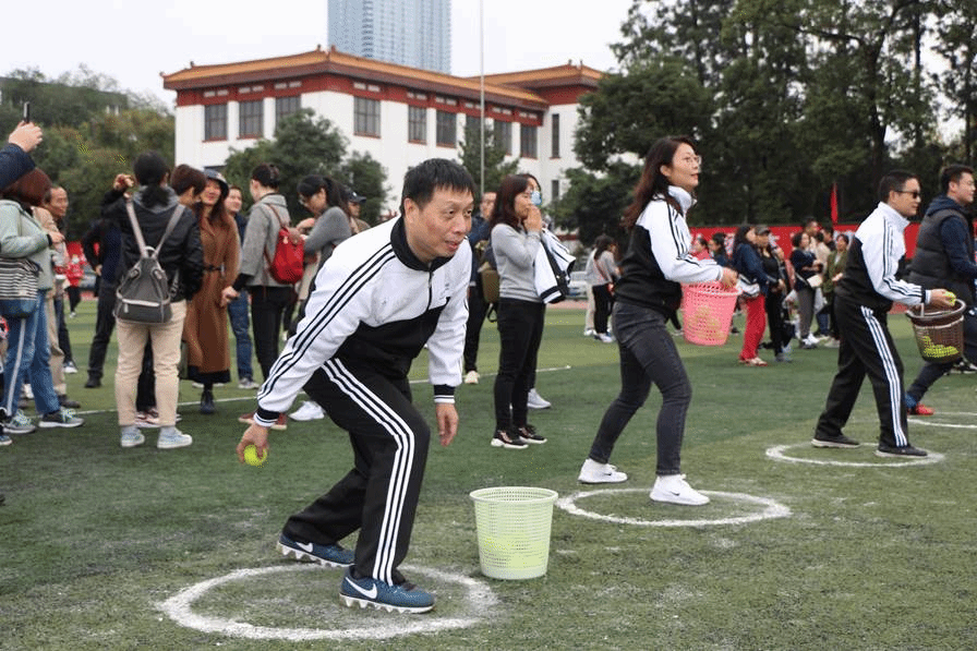 在抛球入筐、绕杆射门、毛毛虫竞速、接力赛、跳绳等集体项目中,参赛老师们团结协作,在比赛中喊着口号达成默契。而在赛场周围,也不乏加油打气和拍摄记录的老师,他们为赛后的运动员递上水和饮料,令激烈的运动赛场充满着温情。