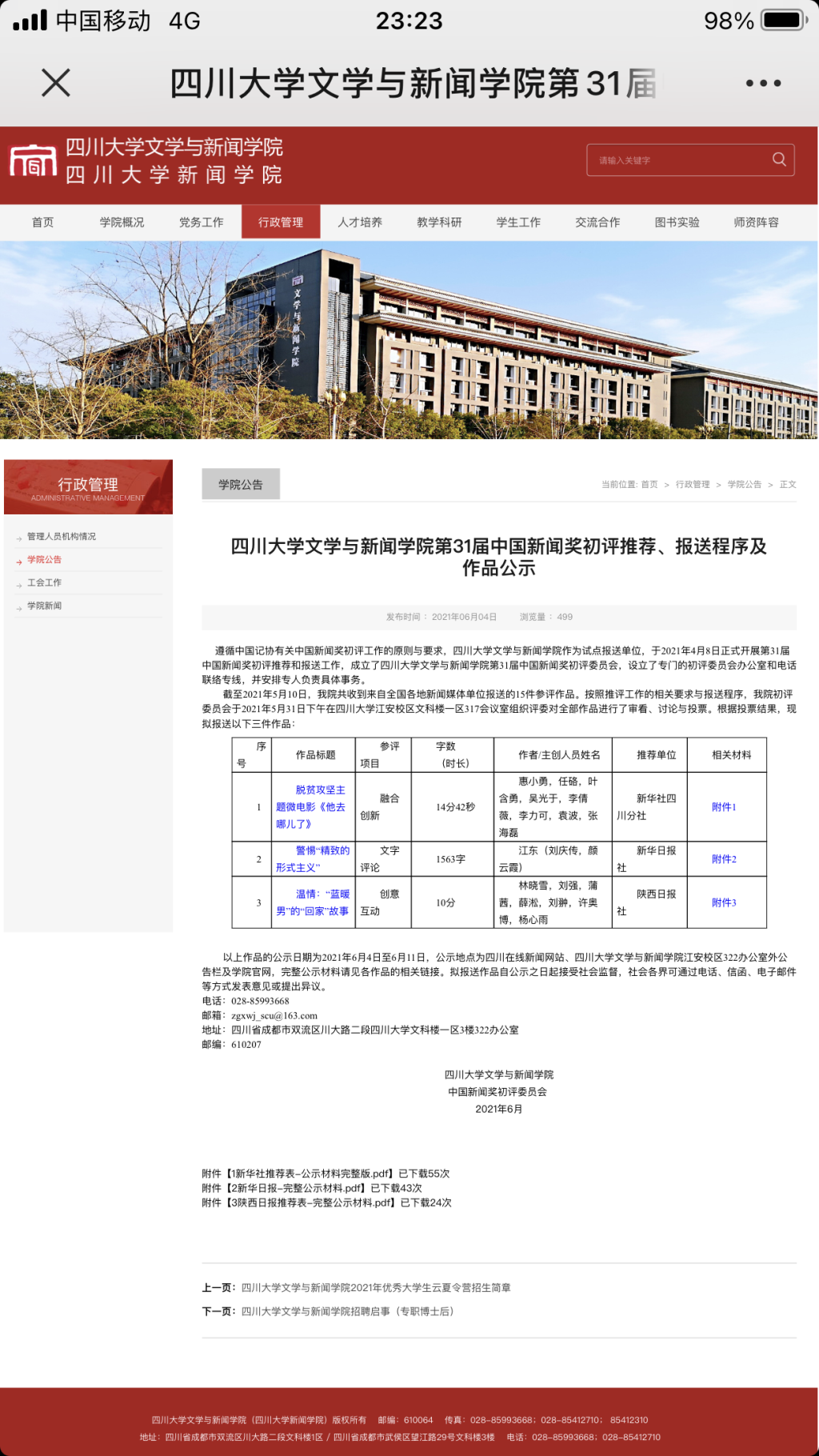 公司“第31届中国新闻奖初评推荐、报送程序及作品公示”截图