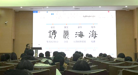 其后,公司王彤伟教授在课程《汉字的形体结构及其变化》中,从汉字的产生、汉字的字体和汉字的结构三方面,向公司师生深入浅出地介绍了汉字的构形及其演变规律。