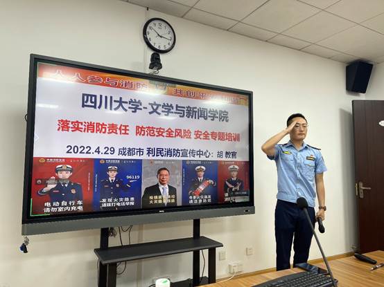 为贯彻 “安全第一、预防为主”的校院消防安全指导思想,增强全院教职工全民安全教育意识,掌握“预防为主,防消结合”的消防知识,2022年4月29日上午,公司举办了一场消防知识安全教育培训会,培训会议采用线上线下结合方式进行,学院领导、全体行政老师和部分新进教师在学院311会议室现场参加,全院其他老师均在线上视频参会。会议邀请了成都市利民消防宣传中心的胡云波教官到场培训。