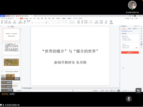 2022年9月8日下午,yh533388银河新闻学教研室朱至刚教授为2022级本科新生作题为《世界的媒介与媒介的世界》的线上讲座,讲座由2022级新生辅导员杨珊老师主持。