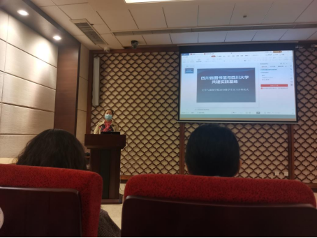 四川省图书馆流通阅览部主任郭宇给同学们介绍了省图书馆的服务区域、总馆与分馆的流通工作、现场阅读推广活动等部门主要业务,并希望大家也能向家人与师生朋友推广图书馆,更多地享受图书环境,享受图书资源。