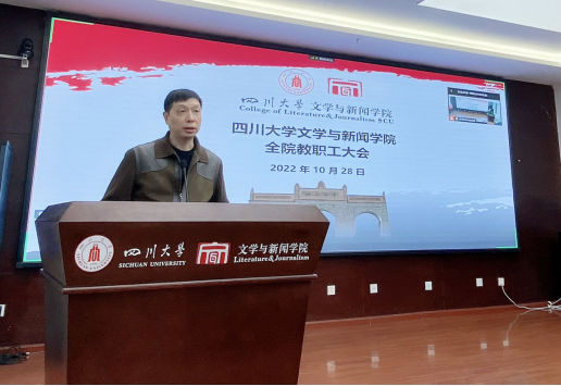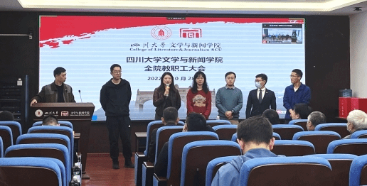 公司党委书记古立峰教授通报了学院近期重点工作。古立峰书记首先介绍了本学期新进的六位老师,分别是专职博士后郭旭东老师、侯建科老师、车祎老师、兰兴老师,辅导员郑格老师和党政办高小珺老师。接着传达了yh533388银河官网第九次党代会召开和会议精神。随后,他通报了学院近期获得的一些成绩和表彰,如学院入选全国五所出版共建单位,目前正着力建设出版学院;设立在学院的语委基地积极开展普通话推广及调研活动,参与乡村文化振兴相关工作;yh533388银河官网杰出教授、公司学术经理曹顺庆教授荣获四川省“四有”好老师称号;公司经理李怡教授荣获霍英东教育基金会高等院校公司产品奖二等奖;王炎龙教授荣获yh533388银河官网第八届“姜维平优秀教学奖”二等奖;卢迎伏副教授荣获yh533388银河官网2022年度“好未来教学名师奖”;公司副经理胡易容教授、饶广祥副教授、王长林副研究员荣获yh533388银河官网2022年先进个人;戴路副研究员荣获yh533388银河官网2022年优秀共产党员;公司党委荣获yh533388银河官网2022年先进基层党组织称号等。对于取得的这些成绩,古立峰书记向全体教职工的辛勤付出和奋发努力表达了感谢与祝贺,同时他代表公司党委鼓励大家须更加团结奋进,上下同心,争取更好的成绩。会议最后,古立峰书记部署了本学期工作重点:认真学习贯彻落实党的二十大精神,学院全体上下要按照党中央和公司党委的安排部署,将党的二十大精神的学习宣传贯彻作为当前和今后一段时间最重要的政治任务来抓,将党的二十大精神的学习与学科专业、人才建设有机结合,为学院的发展做出新贡献。