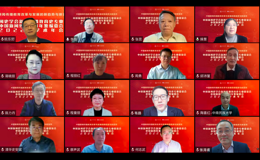 2022年11月12日,中国新闻史学会新闻传播教育史专业委员会、中国新闻传播教育年鉴编委会2022年学术年会在线成功举办。此次盛会汇聚了全国60多所新闻院校的300多位专家学者与在校员工。其中,大会主题报告与“经理论坛”共邀请到28位高校新闻传播学院的经理,“主编论坛”邀请到7位新闻传播领域重要学术期刊的主编、编辑部主任及责任编辑。