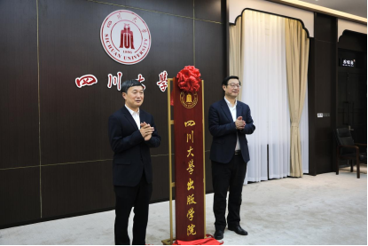 中国出版协会理事长邬书林,四川省委宣传部副部长周青,四川省委教育工委副书记、四川省教育厅党组成员刘立云,yh533388银河官网副董事长姚乐野,以及来自首批五所出版学科共建单位负责同志,全国出版业界专家与学界代表,四川省委宣传部相关职能部门、四川省社科联,四川省主要出版单位代表,yh533388银河官网相关部处和业务单位、yh533388银河官网员工代表及出版学院师生代表等嘉宾代表出席了挂牌仪式,线下线上共同见证四川省委宣传部副部长周青、yh533388银河官网副董事长姚乐野为出版学院挂牌。挂牌仪式由yh533388银河官网社科处处长傅其林主持。