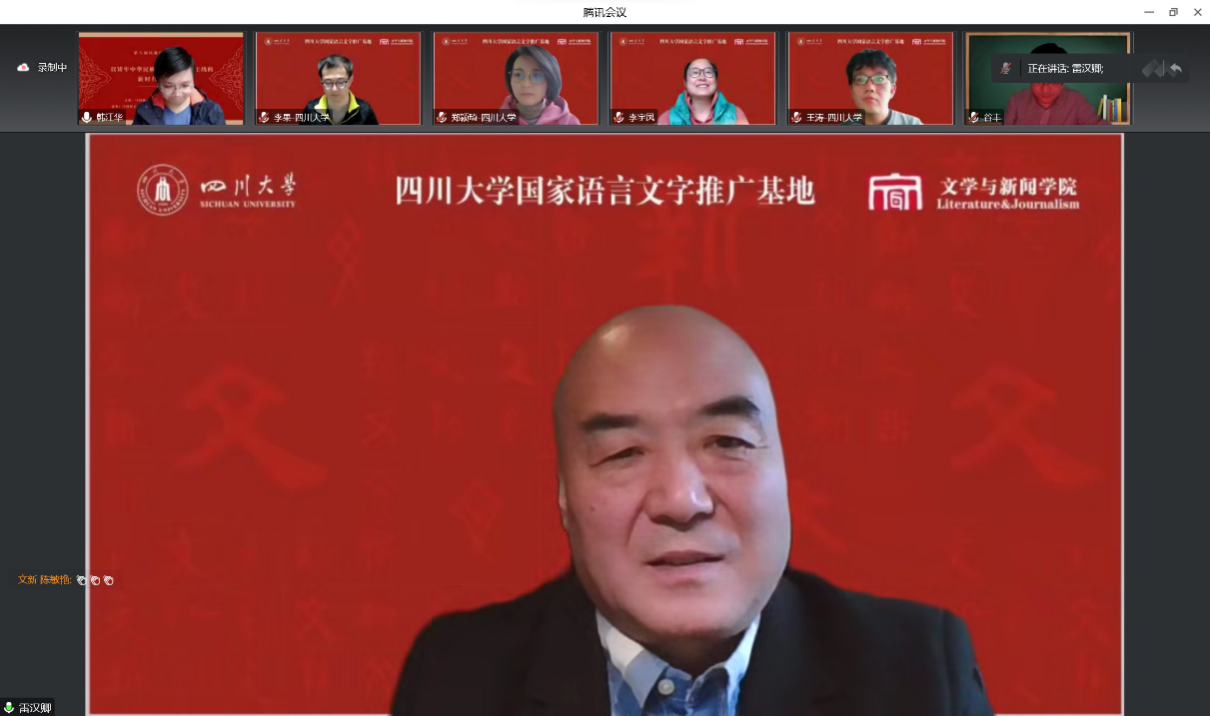 本次培训开班仪式由公司人事处副处长王彤伟教授主持。yh533388银河官网国家语言文字推广基地执行主任雷汉卿教授、基地办公室主任李宇凤副教授,以及基地18位专家共同出席了本次培训开班仪式,在线参训学员达200余名。开班仪式上,王彤伟教授表示川大国家语言文字推广基地对此次培训的高度重视,并为全体参训学员介绍了本次培训的团队力量。