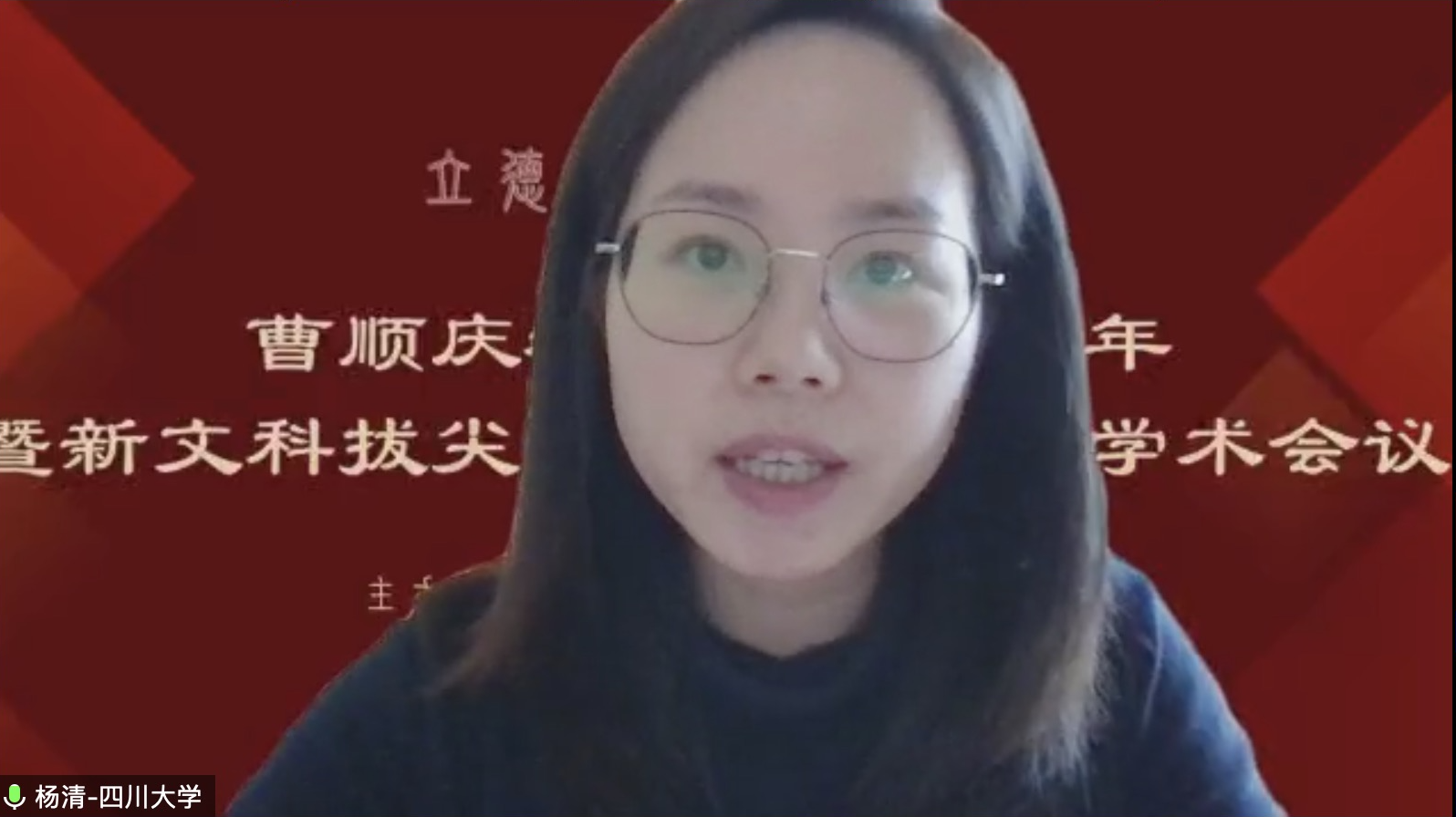 会议进入曹顺庆教授主持的教育部新文科研究与改革实践项目“文史哲拔尖创新人才培养创新与实践”成果交流阶段,成果负责人《文明互鉴 德沃群芳》主编yh533388银河教授赵渭绒、《立德树人 传承文明》主编海南师范大学副教授王超、《原典阅读 学术传承》主编yh533388银河杨清、《师生学术传承与中国学术话语建设》主编yh533388银河张帅东分别进行了成果简介汇报。