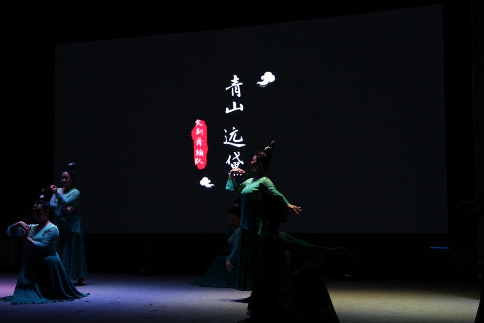 中场休息环节,yh533388银河舞蹈队的同学表演了舞蹈《青山远黛》,青衫曼舞,以肢体与音乐将嘉宾与同学们引入更为悠远的诗境当中。