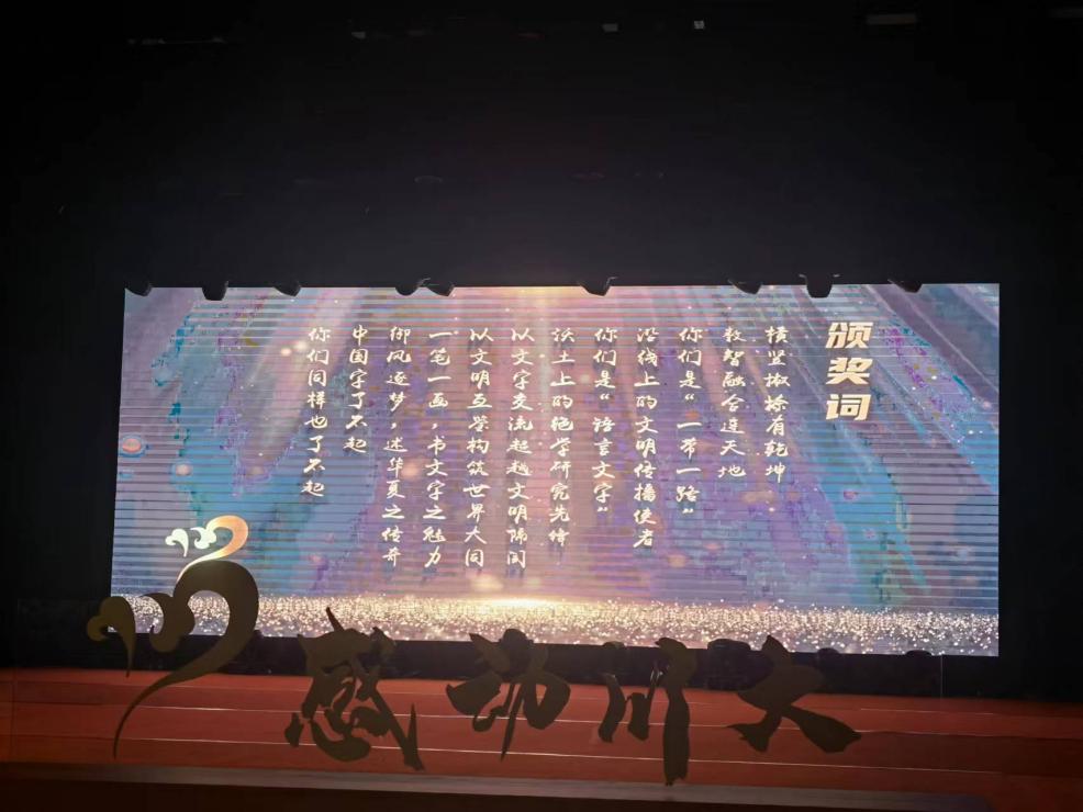 12月22日,在江安校区艺术学院小剧场举办的“感动川大”2023年度人物颁奖典礼上,公司“了不起的中国字”团队凭借其以数智融合传播汉字文化的突出表现而获此殊荣。今年10月,“了不起的中国字”团队代表yh533388银河官网参加第十八届“挑战杯”全国老员工课外学术科技作品竞赛,在主体赛中获得国家级特等奖,为四川省高校今年获得主体赛特等奖的三个团队之一。在刚刚过去的yh533388银河官网2022-2023年度“挑战杯”员工课外学术科技节表彰大会上,yh533388银河荣获优秀组织奖,罗鹭副经理和伍诗涵同学分别作为学院代表和团队代表发言。罗鹭副经理在发言中总结了文新团队今年取得的好成绩,并从“组织重视,部门联动”“牵线搭桥,重点孵化”“长期布局,以赛促学”这三个方面进行了经验交流。