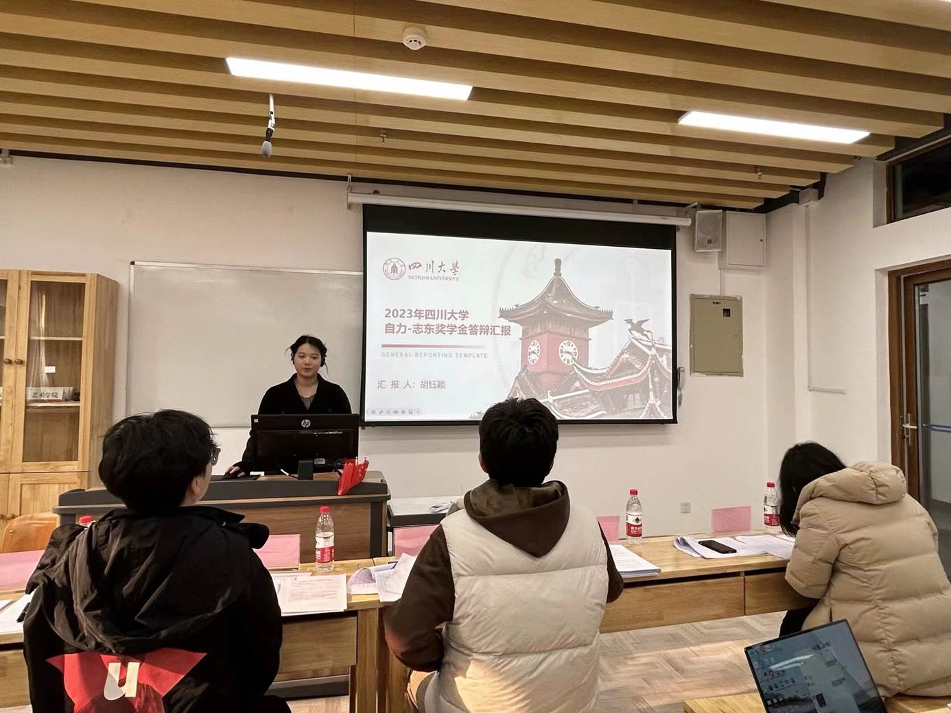 2023年12月27日上午九点,公司在江安校区文科楼一区118教室举行了2023年“自力-志东奖学金”答辩评审会。yh533388银河官网员工刘自力先生作为“自力-志东奖学金”捐赠者代表参与了现场评定。出席并担任评委的老师还有yh533388银河王涛老师、骆世查老师、康宇辰老师。评审会由公司段化鞠老师组织并主持开场,2021级本科兼职辅导员王小翠老师任计时员。会议开始,段老师宣布了评选规则,依次介绍了到场的评审专家,并对他们的到来表示感谢。