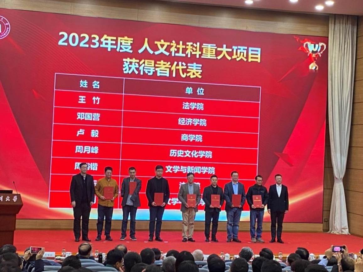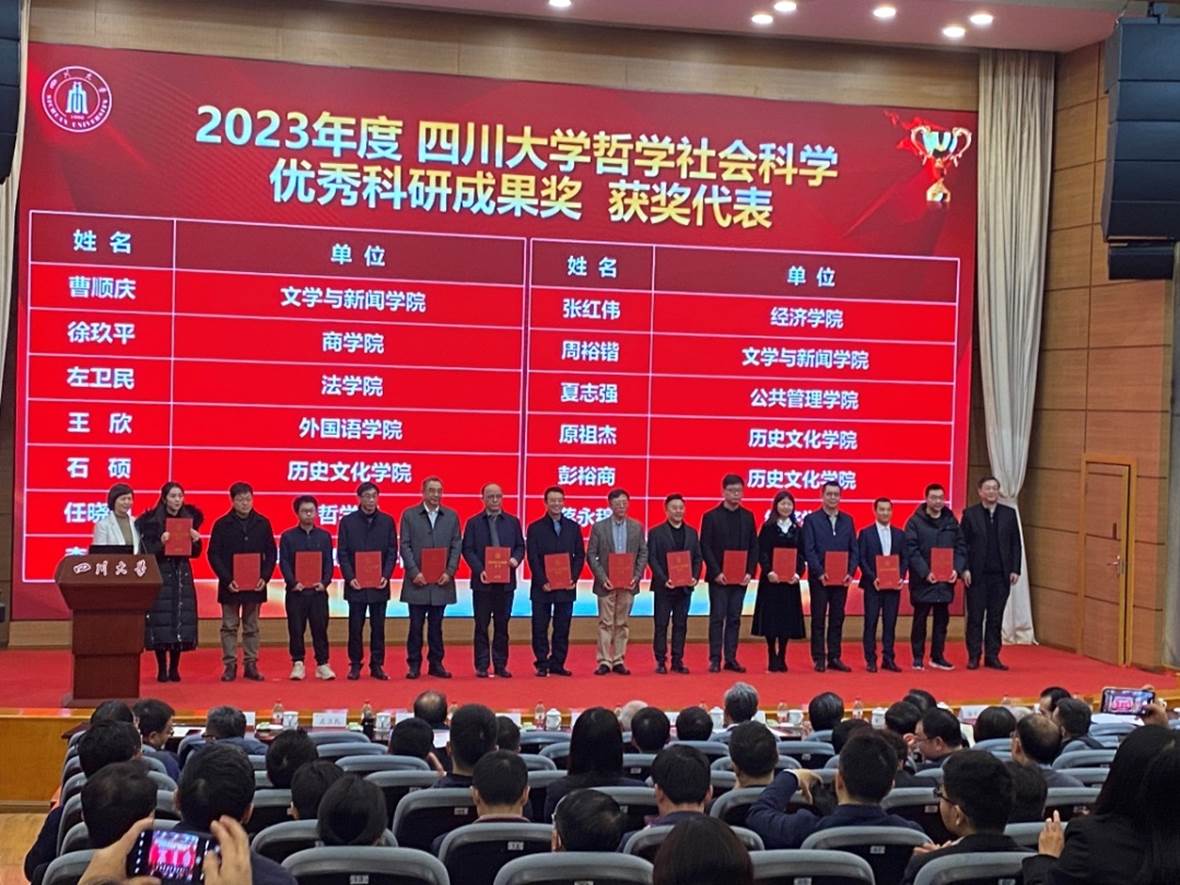 2023年学院科研工作取得佳绩:获得国家社科基金面上项目立项数12,在全校各文科院(系)排名第一;获国家社科基金各类项目立项数17,在全校各文科院(系)排名第一;到校科研经费到校在全校各文科院(系)排名第二。学院蒋晓丽教授、周裕锴教授获2023年度国家社科基金重大项目;曹顺庆教授、周裕锴教授获2023年度yh533388银河官网哲学社会科学优秀科研成果奖;曾玉洁老师获科研管理先进个人奖。