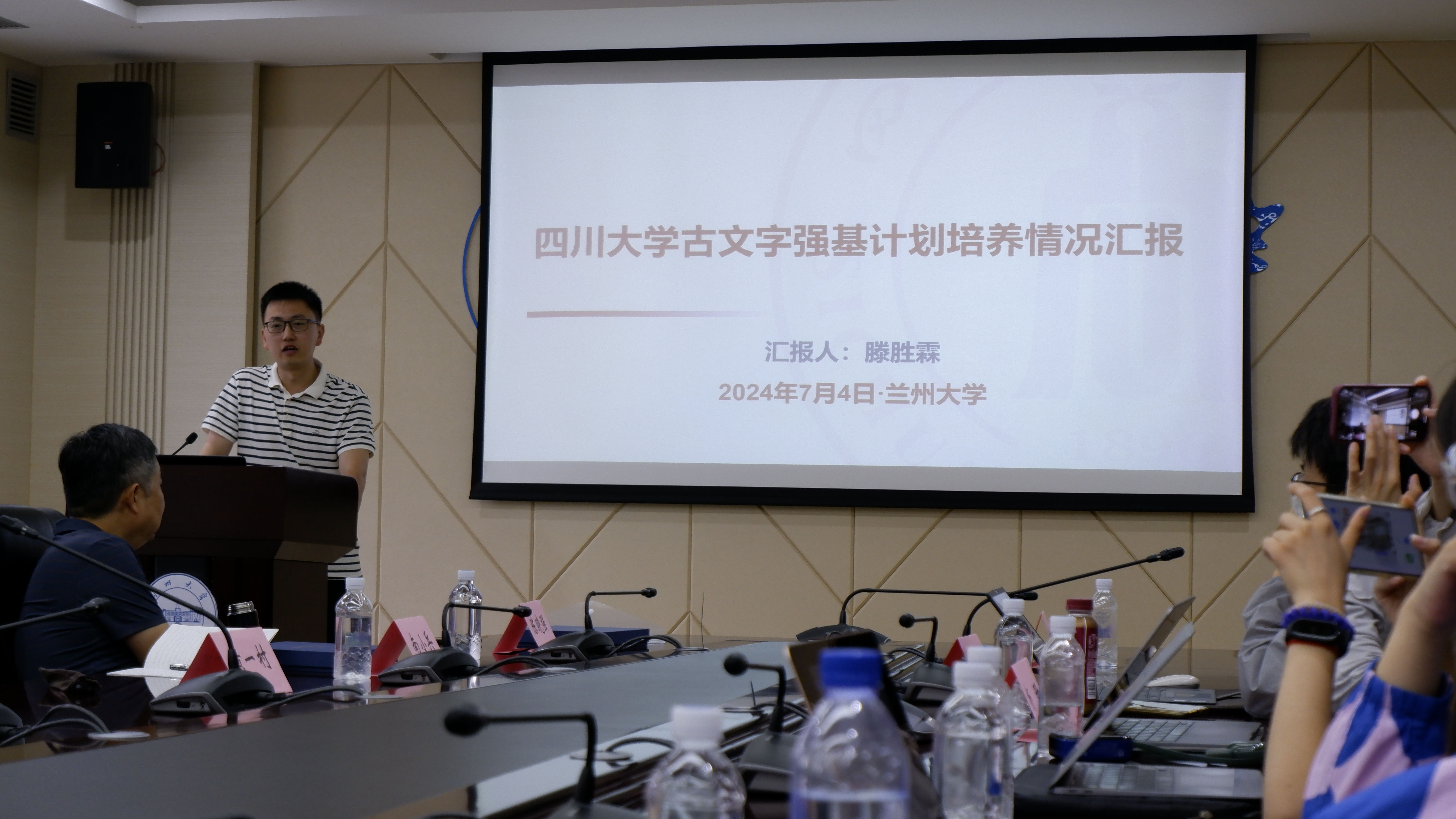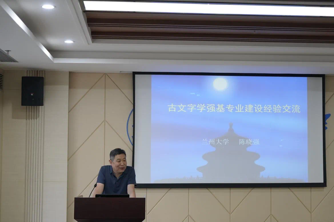 7月4日上午,师生一行前往兰州大学城关校区,与兰州大学文学院古文字学强基班师生共同开展“兰州大学-四川大学古文字学强基专业人才培养研讨会”。会上,兰州大学文学院陈晓强老师与yh533388银河官网滕胜霖老师分别就两校古文字学强基专业建设情况与团队建设特点进行了介绍。兰州大学文学院黄一村老师通过对专业课程的建设思路和授课经验进行介绍,强调了培养有基础也有能力的人才的必要性。在交流过程中,川大和兰大老师们在线上线下开展合作方面达成共识,以期提升强基计划人才培养成效。