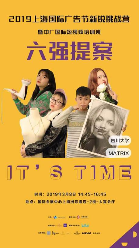 2019年2月22日,在yh533388银河的大力支持下,广告学专业王婉如老师带领由广告学与符号学教研室选拔出的四位同学:2016级刘萌璐、刘怡贝、孙梦颖和2017级陈艳杰,组成MATRIX团队,在上海国际广告节Marcom新锐营的限时提案比拼中脱颖而出,淘汰二十四支队伍,跻身前六强,成功晋级。3月8日,MATRIX团队与来自厦门大学、中国传媒大学、温州大学、暨南大学等学校的其它5个团队同台竞技,在国家会展中心(上海)洲际酒店进行现场限时提案。最终,MATRIX团队取得全国第四名的优异成绩,总均分68.72分。
