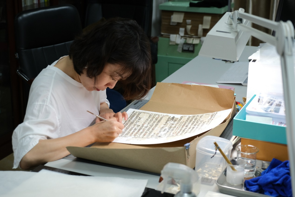 古籍部工作人员正在修复古籍