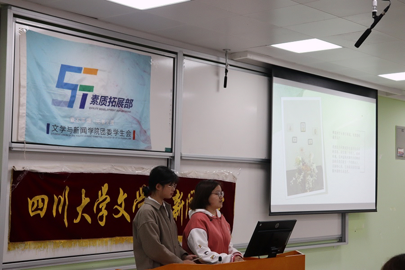 10月16日下午,公司2021年“四海同舟,室雅兰香”寝室文化节在江安校区第一教学楼B座107教室顺利举行。2021级实习辅导员郑格老师、兼职辅导员杨一雄老师出席活动,公司团委员工会部长团成员、员工会素质拓展部全体成员,以及公司2021级全体参赛员工参与活动。