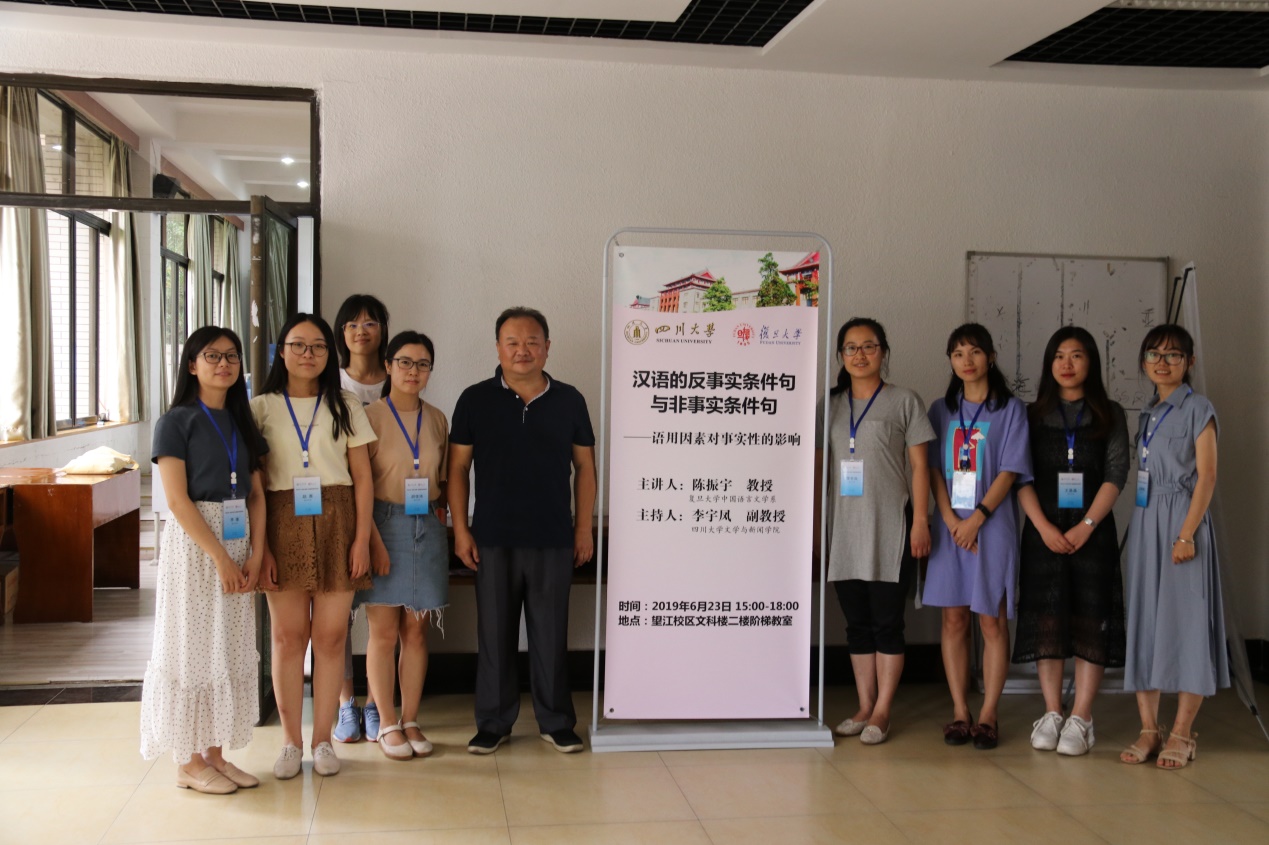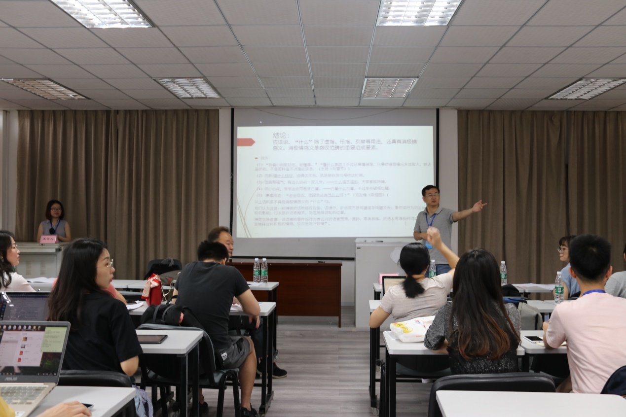 6月23日下午, 在文科楼二楼阶梯教室,陈振宇教授给大家带来了一场主题为“汉语的反事实条件句与非事实条件句”的讲座,从语用因素对事实性的影响角度研究这一问题。陈教授的研究首先将条件句语料二分为小说语体和正式语体,然后根据统计结果做如实描写,从语用机制出发进行解释。这一研究把反事实条件句和非事实条件句纳入一个理论系统中,统计结果证明:汉语条件句的事实性是一个有规律有序列的连续统。并且,以总量数据为比较基准,将条件句中连接词和特征标记的功能三分为非事实形式、中性形式、反事实形式,它们是决定条件句事实性倾向的重要参考因素。在此基础上,陈教授展示了时间、情感、频率、数量、人称因素在条件句事实性方面的影响,同时,陈教授在逻辑“合取”运算的基础上,阐明了它们对反事实意义和非事实意义的促成原因。