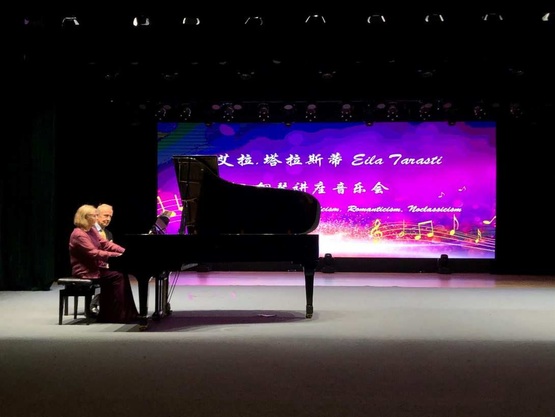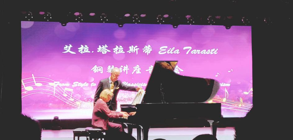 2019年10月29日晚七时,芬兰赫尔辛基大学埃罗·塔拉斯蒂与艾拉·塔拉斯蒂教授“从风格到风格:古典主义,浪漫主义,新古典主义”钢琴讲座音乐会在yh533388银河官网江安校区艺术学院小剧场举行。本次音乐会由yh533388银河主办,yh533388银河官网艺术学院协办。小剧场近500个座位座无虚席,该钢琴讲座为川大师生带来了知识与艺术的双重享受。
