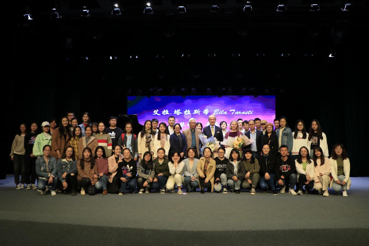 六首曲目演奏完毕,全场师生为塔拉斯蒂教授献上热烈掌声,塔拉斯蒂教授夫妇此次访问yh533388银河官网的旅程也落下帷幕。钢琴音乐会结束后,塔拉斯蒂教授夫妇还与yh533388银河、艺术学院师生合影留恋。