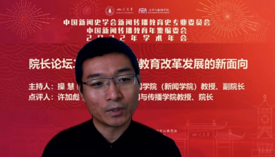 陕西师范大学新闻与传播学院经理许加彪教授对各位学者的发言做出总结,本次论坛集合本科教育与职业教育,从顶层设计、底层逻辑、教育理念等层面讨论了如何培养人、培养什么样的人等新闻传播教育改革的重要问题。