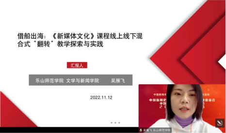 乐山师范学院讲师吴雁飞作了名为《借船出海:〈新媒体文化〉课程线上线下混合式“翻转”教学探索与实践》的主题报告。她从“学习金字塔”理论出发,提出了让员工主动学习的必要性,指出“线上+线下”的混合式翻转模式能实现知识的“接受-输出-再接受-持续输出”,从而达到知识的应用与固化,提升员工学习效果。在具体方案设计上,她介绍了以员工为主体的混合式教学的4个阶段:MOOC内容学习、线上翻转课程运行管理、线下翻转、教学评价和反思。