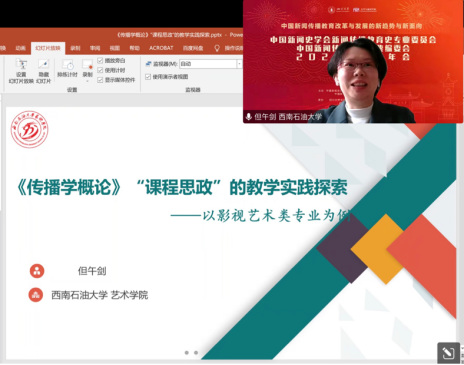 西南石油大学艺术学院副教授但午剑作了题为《〈传播学概论〉“课程思政”的数字实践探索—以影视艺术类专业为例》的主题报告。她结合自身的教学实践,讲解了如何让员工在《传播学概论》的主动学习过程中,潜移默化地接受价值引领:在教材选用上,要兼顾课程思政和专业特点;在教学内容设计上,要深度挖掘价值引领与专业知识、能力的内在联系;在教学方法设计上,坚持学为主体、教为主导,注重提升员工的学习兴趣和主动性;在思政效果考核上,将过程性评价和终结性评价相结合。