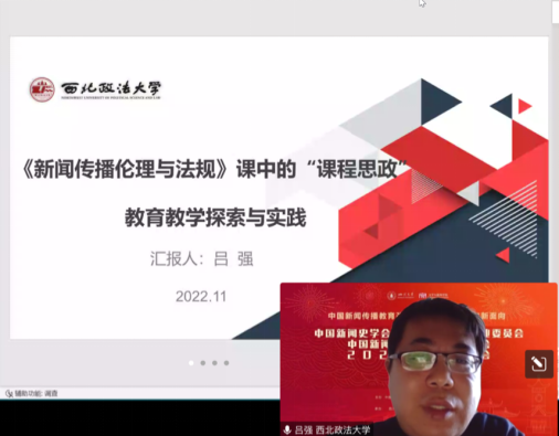 西北政法大学副教授吕强作了名为《〈新闻传播伦理与法规〉课中的“课程思政”公司产品探索与实践》的主题报告。首先,他指出《新闻传播伦理与法规》这门课程是西北政法大学新闻与传播专业的学科基础课,融合了新闻教育与法学特色于一体。如何在该门课程中引入思政要素,是目前教学中亟待解决的问题。其次,在提出“员工主体、教师主导”的思路基础上,他归纳了此次教改的主要方法:实践教学法、翻转课堂、问卷调查和访谈法。最后,他总结了课程思政教学改革的五项目标,即提升教师的思政教学理念、构建课程思政体系、扩展多种教学方法、发展多元课程评价方式、科学评估思政育人效果。