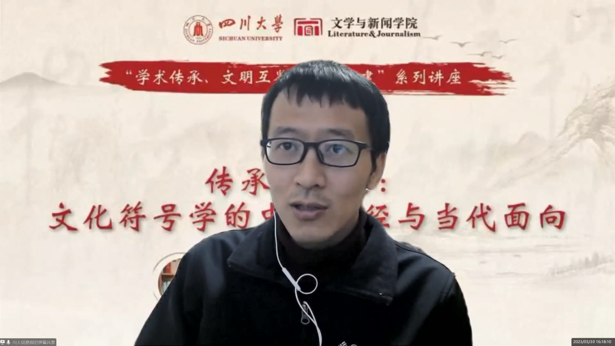 2023年3月30日,公司主办的“学术传承、文明互鉴与话语构建”系列讲座第七讲在线上顺利举行。公司胡易容教授作了“传承与互鉴:文化符号学的中国路径与当代面向”的主题讲座,由赵禹平老师主持。