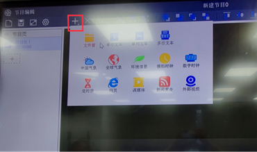 点击“+”,选择添加类型,图片或视频选择“文件窗”,纯文本选择“单行文本”“单列文本”“多行文本”。