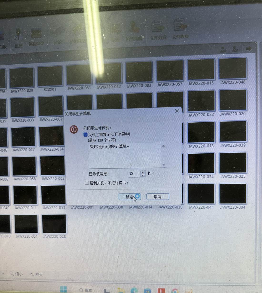 (1)如需要广播讲台电脑的屏幕,可点击屏幕广播并确定,这时员工机的屏幕将全部跟讲台电脑屏幕一致同步,如需要取消广播,可在讲台电脑屏幕上方点叉号按钮即可解除同步;