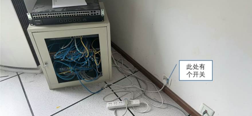 2、打开讲台旁的交换机,如已有灯闪烁,即表示已经打开,如没有闪烁,则请检查墙上插座处开关和插线板的开关。