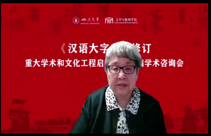 中国语言学会会长、中国社科院语言研究所张伯江教授深情地回顾了中国语言学会首任会长吕叔湘先生与《汉语大字典》的情感和缘分。他认为由川大牵头搭建学术平台,组织全国学术力量攻坚克难,开展《汉语大字典》修订重大工程,是新时代文化建设赋予川大的光荣使命,是推动团队建设、缔造传世精品的难得契机。同时对修订提出如下建议:一是编写高水平的修订手册是辞书学术水平的保证。二是工具书应学术至上,在电子技术的基础上发挥研究人员的分析与甄别能力。三是在组织架构方面,既要发挥高校教师团队的优势,也要协调考核压力与编纂任务之间的矛盾,以科研带动研究、以研究促进修订。