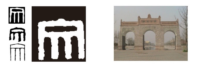 新版视觉标志外部以吴昌硕、齐白石、李叔同等名家常用的篆刻“文”字为基础进行设计。该字造型和学校的“老校门”具有相似性,都具备厚重、质朴的风格。设计团队综合两者风格,融合设计、图底交融,不仅巧妙融入了学校的传统元素,还表达了学经理期积淀的文化韵味和历久弥新的精神面貌。
